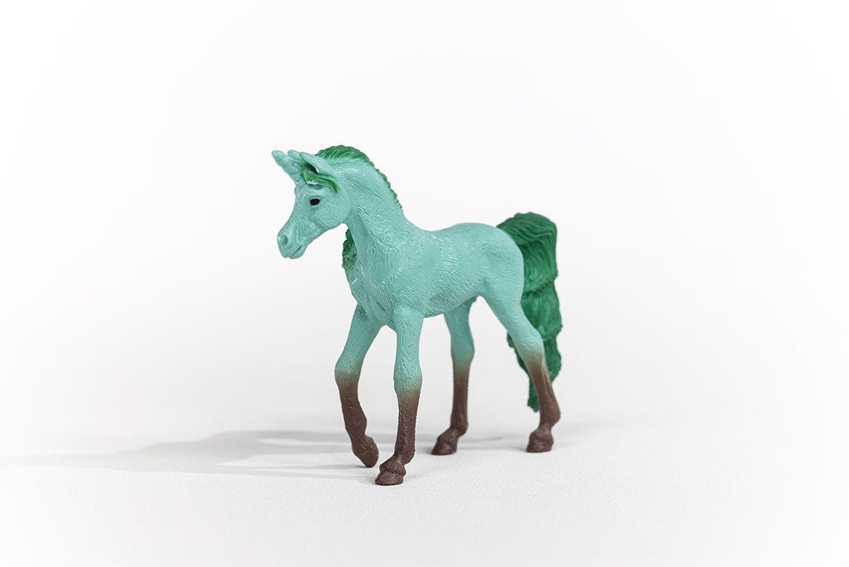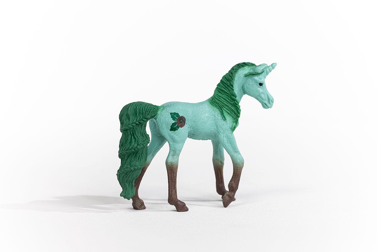 Say hello to Mint Chocolate Unicorn! You and this sweet dessert unicorn were "mint" to be together. She's one of 26 collectible unicorn toys from schleich® inspired by fruits, flowers, and sweet desserts. Round up the entire herd - Mint Chocolate Unicorn and her festive fabled friends are suitable for kids 5 and up and available for a limited time.