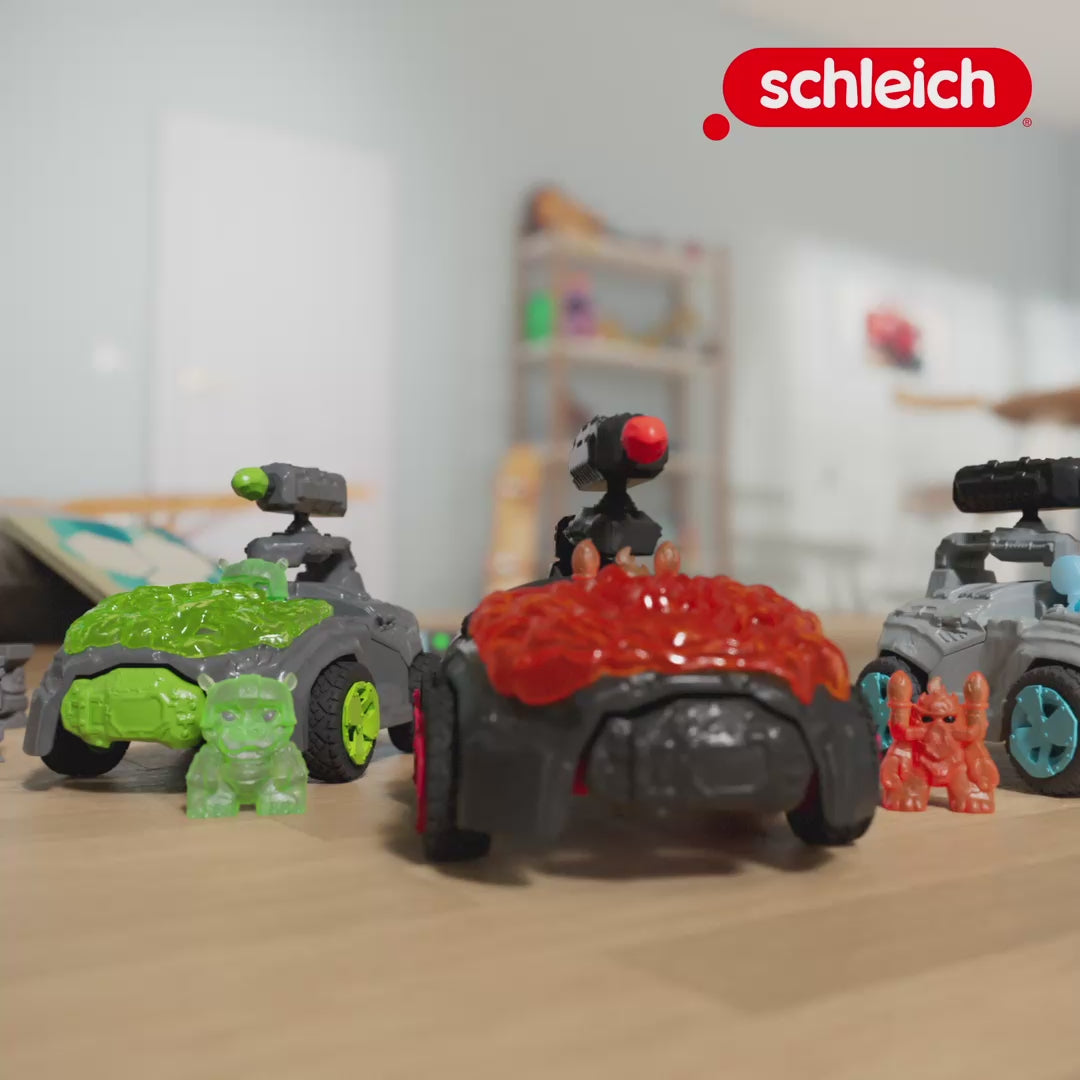 The Ice Crashmobile is unstoppable. With wide tires it can overcome any obstacle. The vehicle is so well-armored. If it does have a collision, it simply detaches and the MINI CREATURE pops out from inside. But before that happens, the MINI CREATURE takes aim with its swiveling firearm. Take cover!
